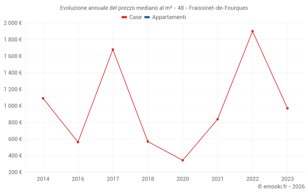 Evoluzione del prezzo mediano al m² degli appartamenti