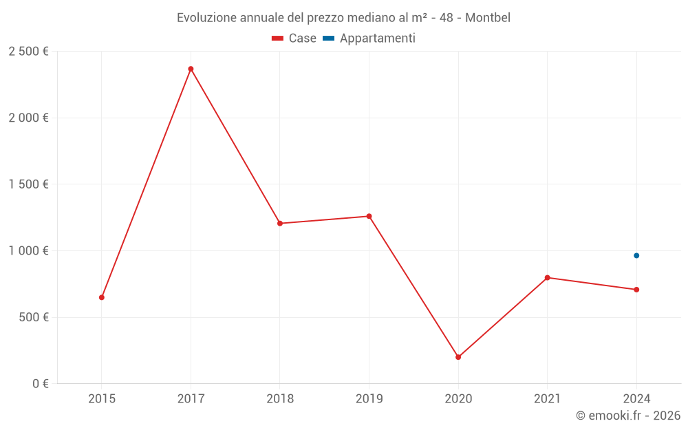 Attenzione, ultimo anno incompleto. Le proiezioni sono effettuate in base alle proporzioni tra semestri dell'anno precedente a livello dipartimentale/nazionale e per tipo di proprietà .