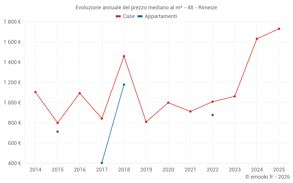 Evoluzione del prezzo mediano al m² degli appartamenti