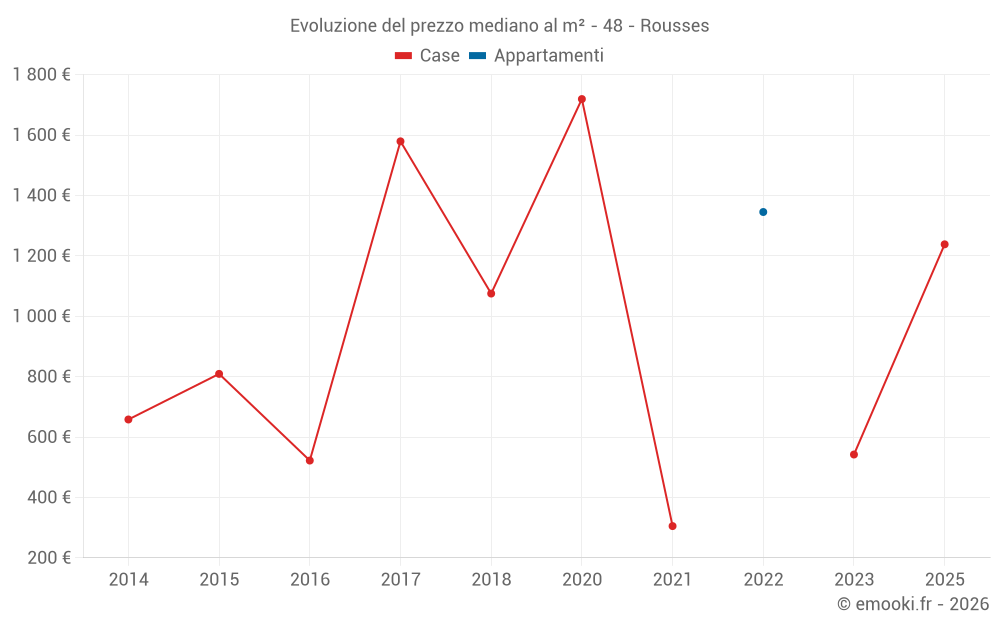 Mappa dei prezzi della casa nel comune di Rousses, scegli una sezione per vedere le transazioni per parcella.