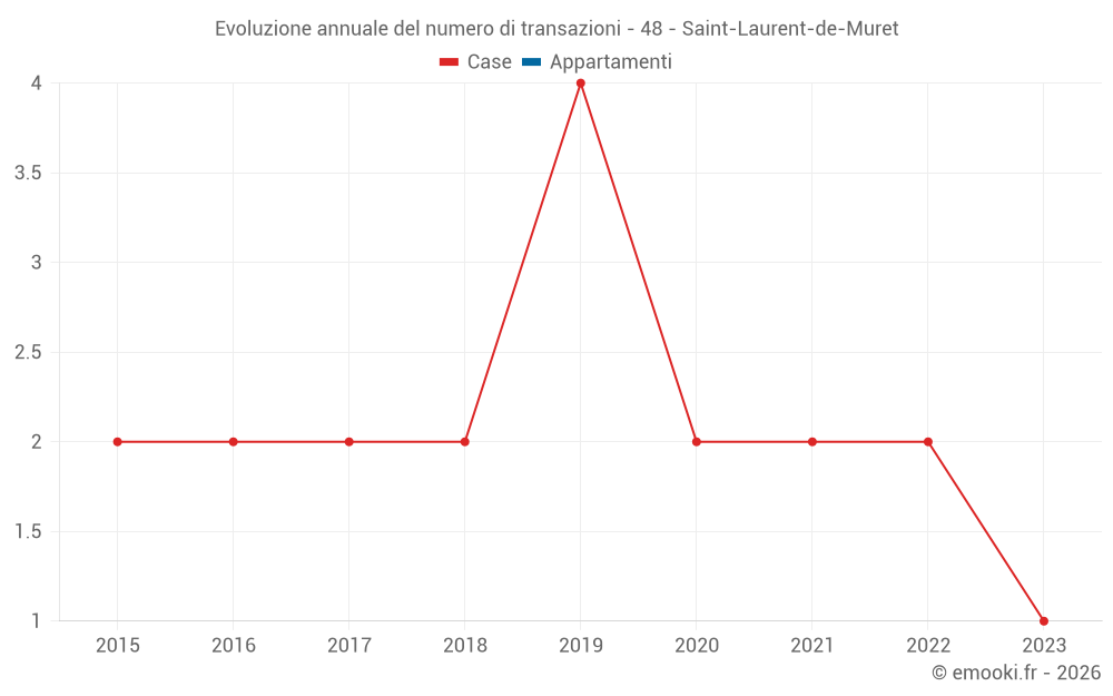 Attenzione, ultimo anno incompleto. Le proiezioni sono effettuate in base alle proporzioni tra semestri dell'anno precedente a livello dipartimentale/nazionale e per tipo di proprietà.