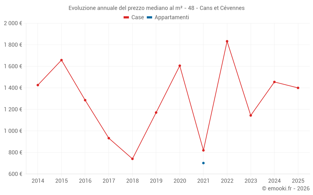 Evoluzione del prezzo mediano al m² degli appartamenti