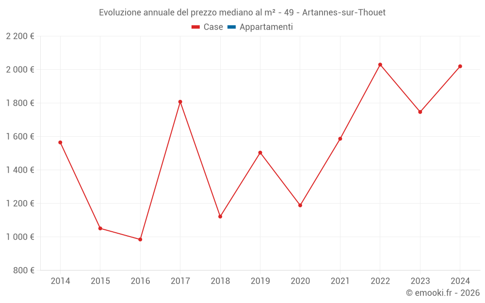 Evoluzione del prezzo mediano al m² degli appartamenti