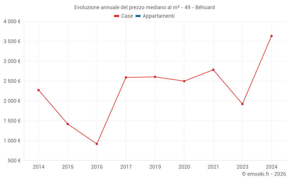 Evoluzione del prezzo mediano al m² degli appartamenti