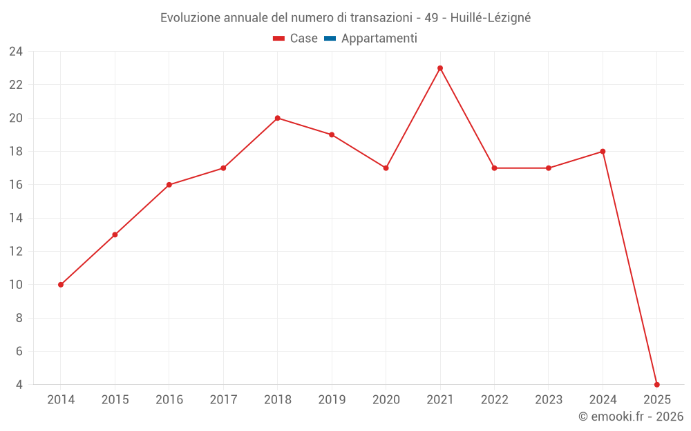 Il prezzo mediano sulle 17 transazioni di case degli ultimi 12 mesi nel comune di Huillé-Lézigné era di 1 379 € al metro quadrato per un valore patrimoniale mediano di 157 000 €. In questo periodo il 60% delle transazioni era tra 1 071 e 2 056 € al metro quadrato (dal 2° all'8° decile).