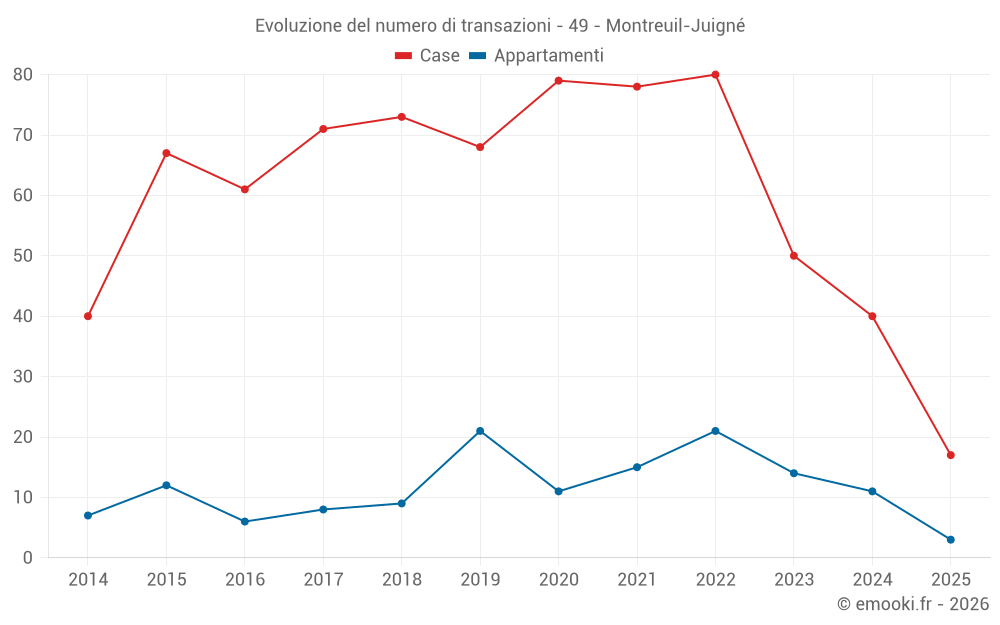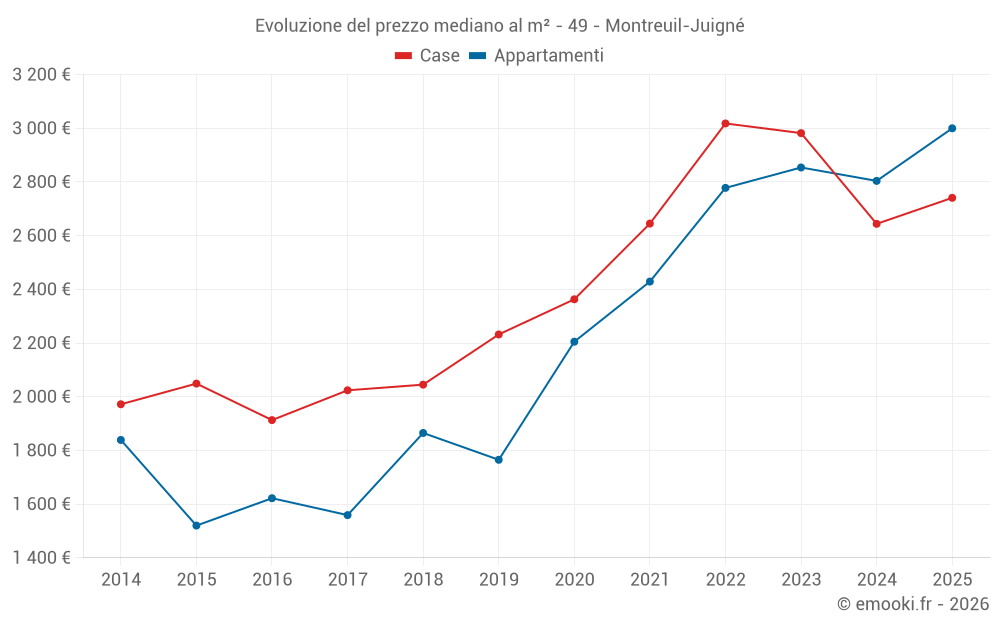 Mappa dei prezzi della casa nel comune di Montreuil-Juigné, scegli una sezione per vedere le transazioni per parcella.