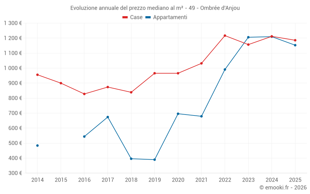 Qual è il prezzo al m2 delle case in Ombrée d'Anjou?