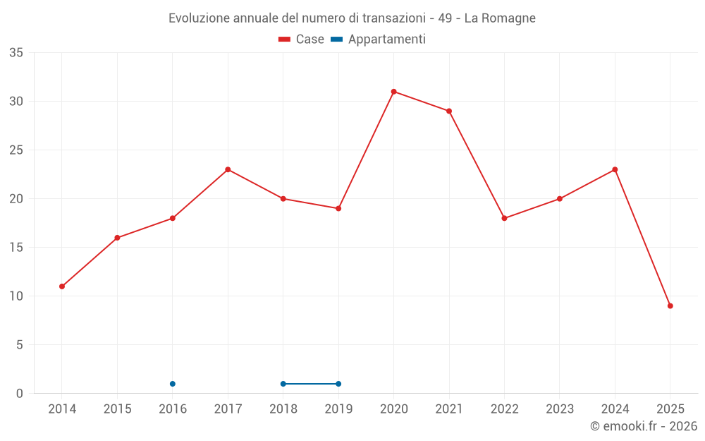 Il prezzo mediano sulle 38 transazioni di case degli ultimi 24 mesi nel comune di La Romagne era di 1 858 € al metro quadrato per un valore patrimoniale mediano di 189 500 €. In questo periodo il 60% delle transazioni era tra 1 055 e 2 246 € al metro quadrato (dal 2° all'8° decile).