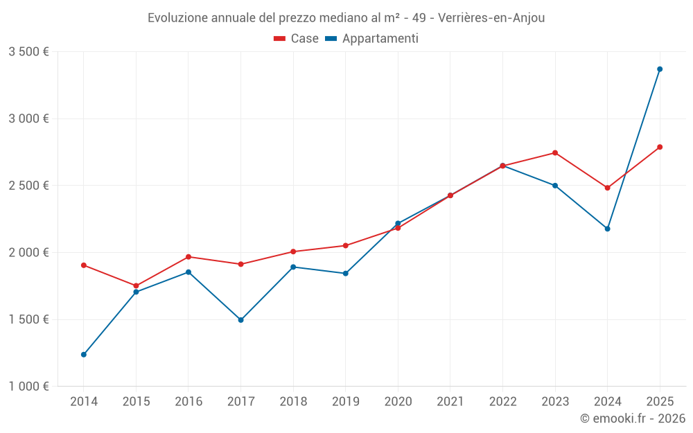 Qual è il prezzo al m2 degli appartamenti in Verrières-en-Anjou?