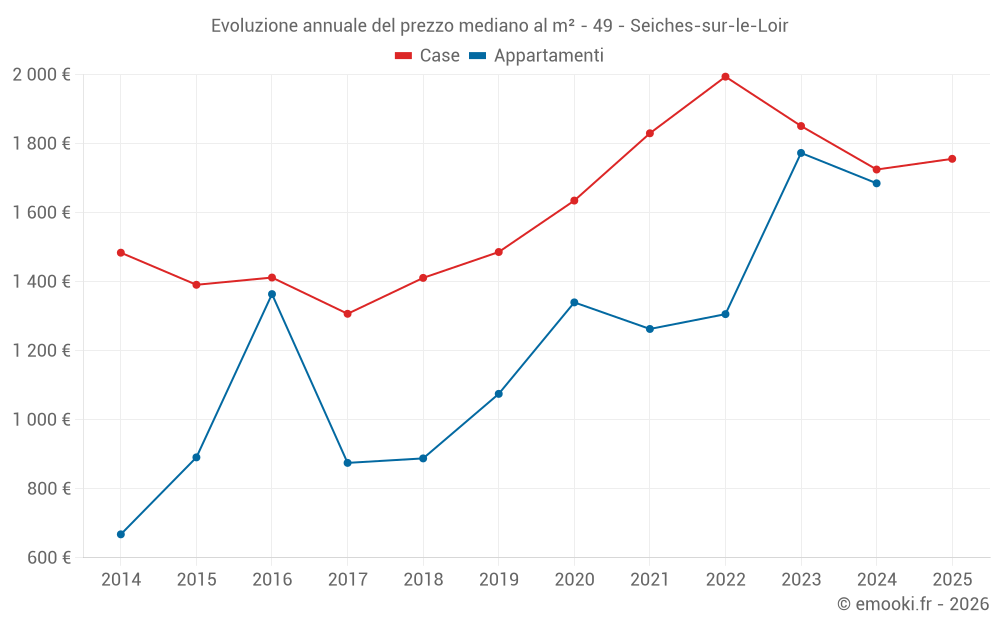 Qual è il prezzo al m2 delle case in Seiches-sur-le-Loir?