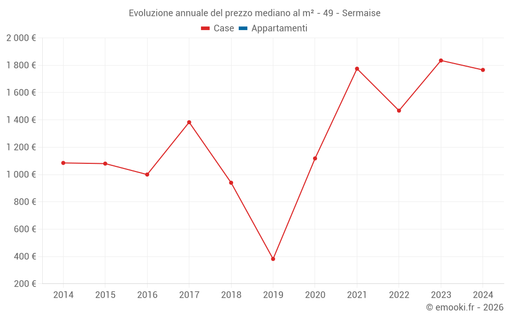 Evoluzione del prezzo mediano al m² degli appartamenti