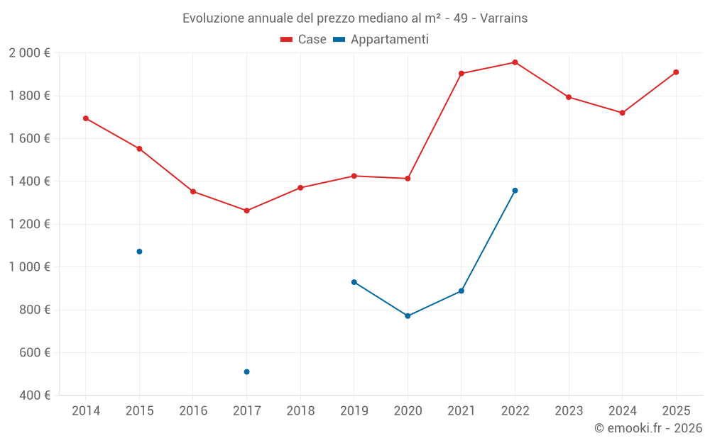 Qual è il prezzo al m2 delle case in Varrains?