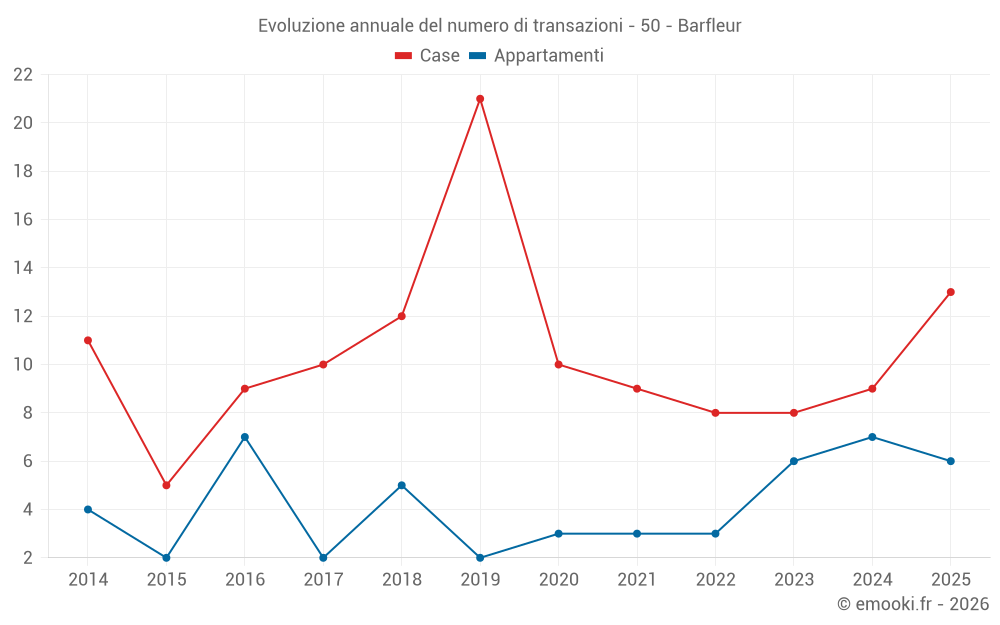 Il prezzo mediano sulle 22 transazioni di case degli ultimi 24 mesi nel comune di Barfleur era di 2 868 € al metro quadrato per un valore patrimoniale mediano di 245 000 €. In questo periodo il 60% delle transazioni era tra 2 108 e 4 200 € al metro quadrato (dal 2° all'8° decile).