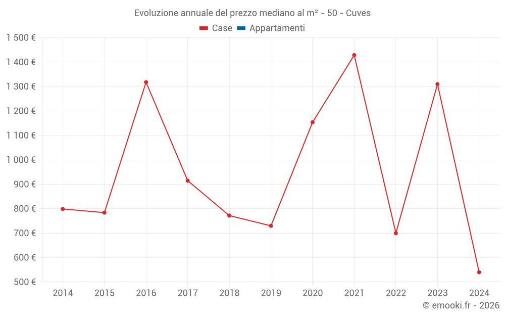Evoluzione del prezzo mediano al m² degli appartamenti