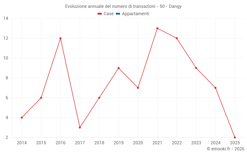 Il prezzo mediano sulle 15 transazioni di case degli ultimi 24 mesi nel comune di Dangy era di 1 221 € al metro quadrato per un valore patrimoniale mediano di 136 000 €. In questo periodo il 60% delle transazioni era tra 777 e 1 525 € al metro quadrato (dal 2° all'8° decile).