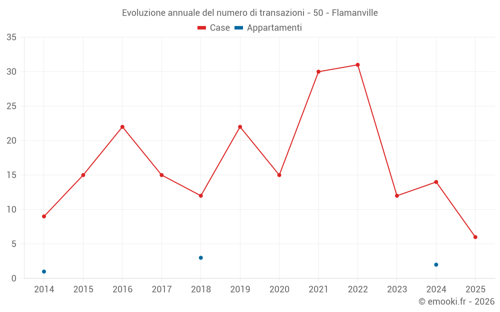 Il prezzo mediano sulle 26 transazioni di case degli ultimi 24 mesi nel comune di Flamanville era di 2 115 € al metro quadrato per un valore patrimoniale mediano di 181 739 €. In questo periodo il 60% delle transazioni era tra 1 727 e 2 870 € al metro quadrato (dal 2° all'8° decile).