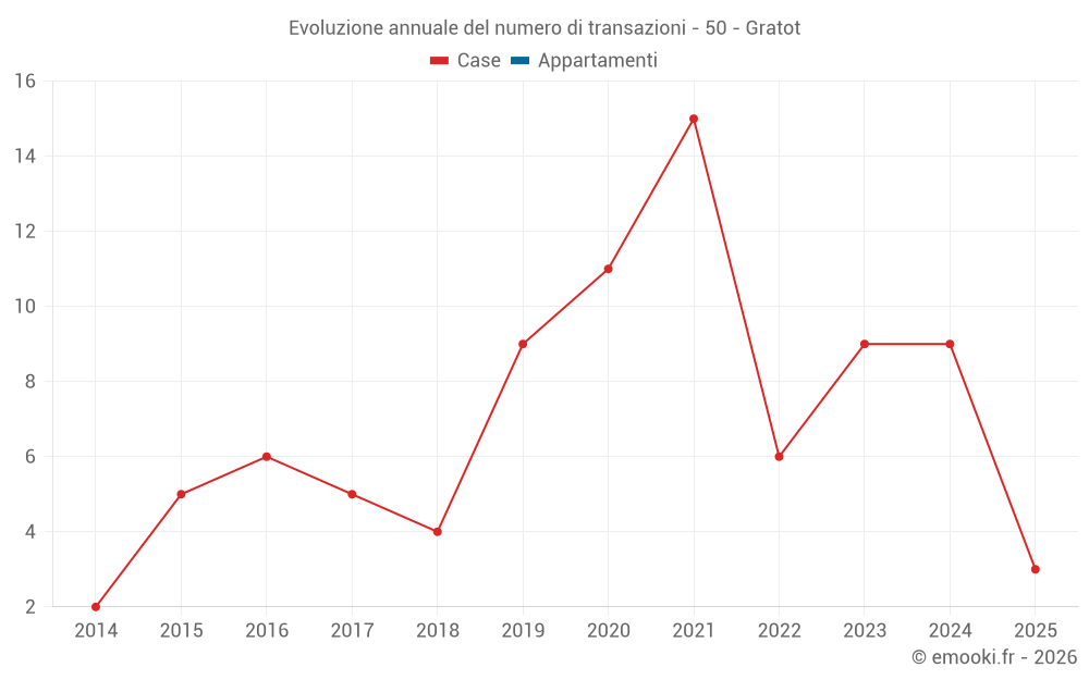 Il prezzo mediano sulle 17 transazioni di case degli ultimi 24 mesi nel comune di Gratot era di 1 822 € al metro quadrato per un valore patrimoniale mediano di 214 153 €. In questo periodo il 60% delle transazioni era tra 1 062 e 2 392 € al metro quadrato (dal 2° all'8° decile).