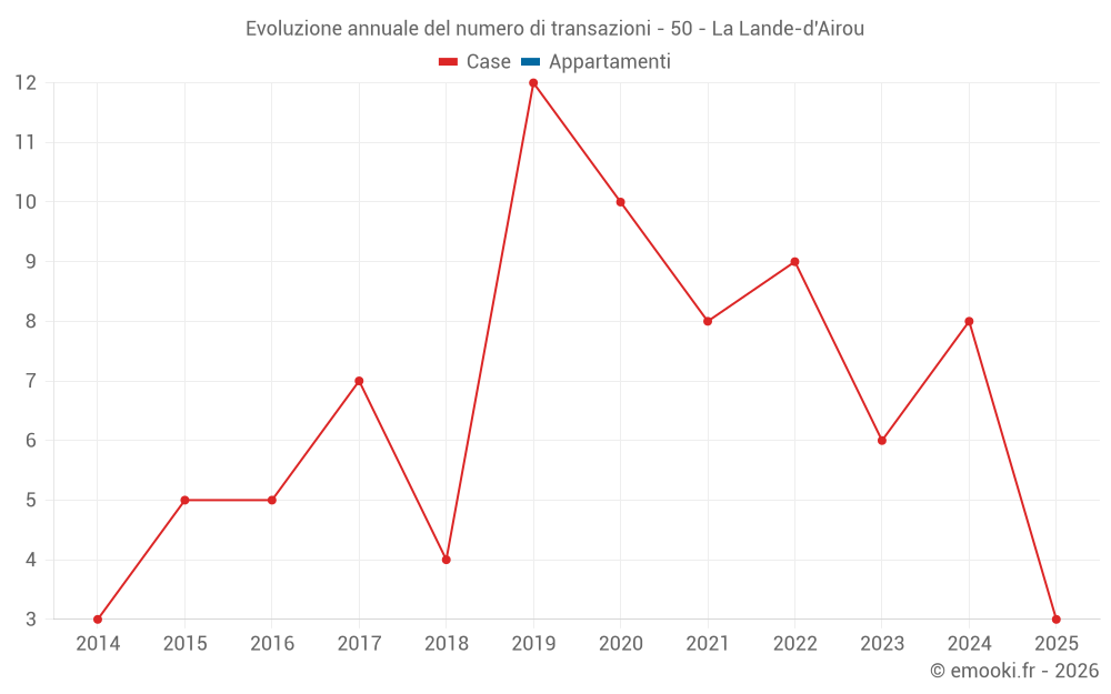 Il prezzo mediano sulle 14 transazioni di case degli ultimi 24 mesi nel comune di La Lande-d'Airou era di 1 233 € al metro quadrato per un valore patrimoniale mediano di 134 950 €. In questo periodo il 60% delle transazioni era tra 926 e 1 707 € al metro quadrato (dal 2° all'8° decile).