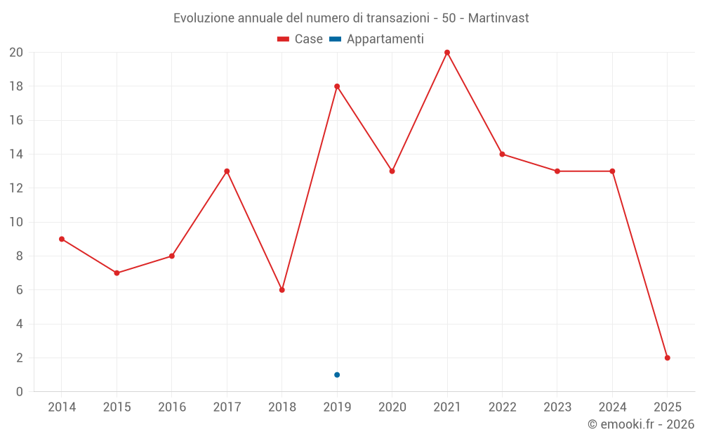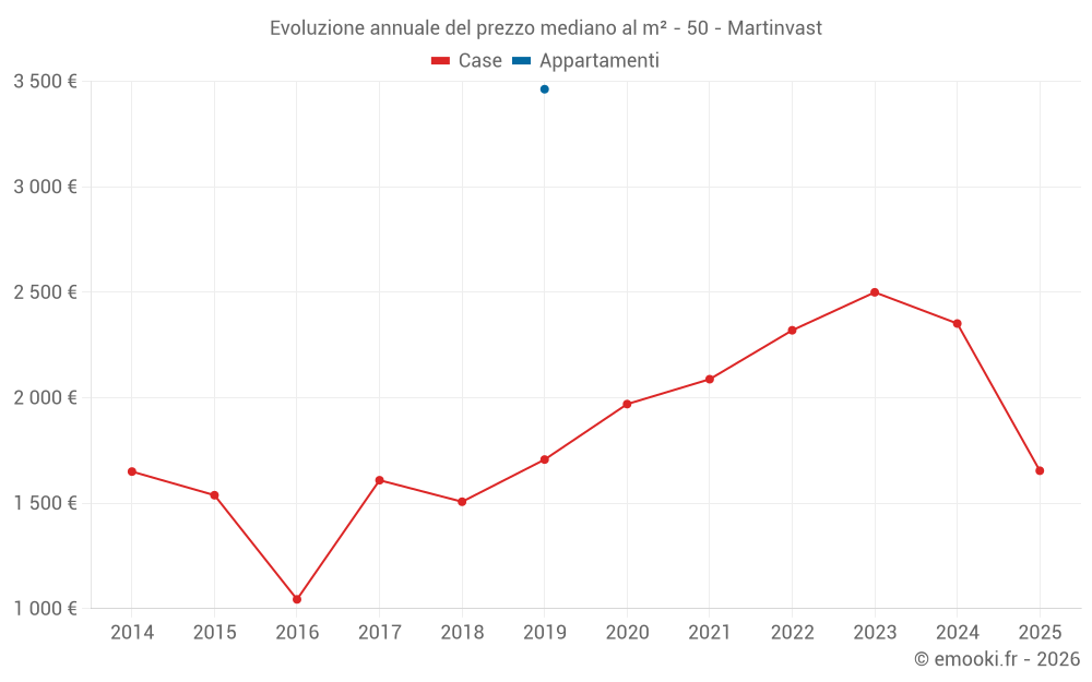 Il prezzo mediano sulle 20 transazioni di case degli ultimi 24 mesi nel comune di Martinvast era di 2 348 € al metro quadrato per un valore patrimoniale mediano di 198 000 €. In questo periodo il 60% delle transazioni era tra 1 515 e 2 828 € al metro quadrato (dal 2° all'8° decile).
