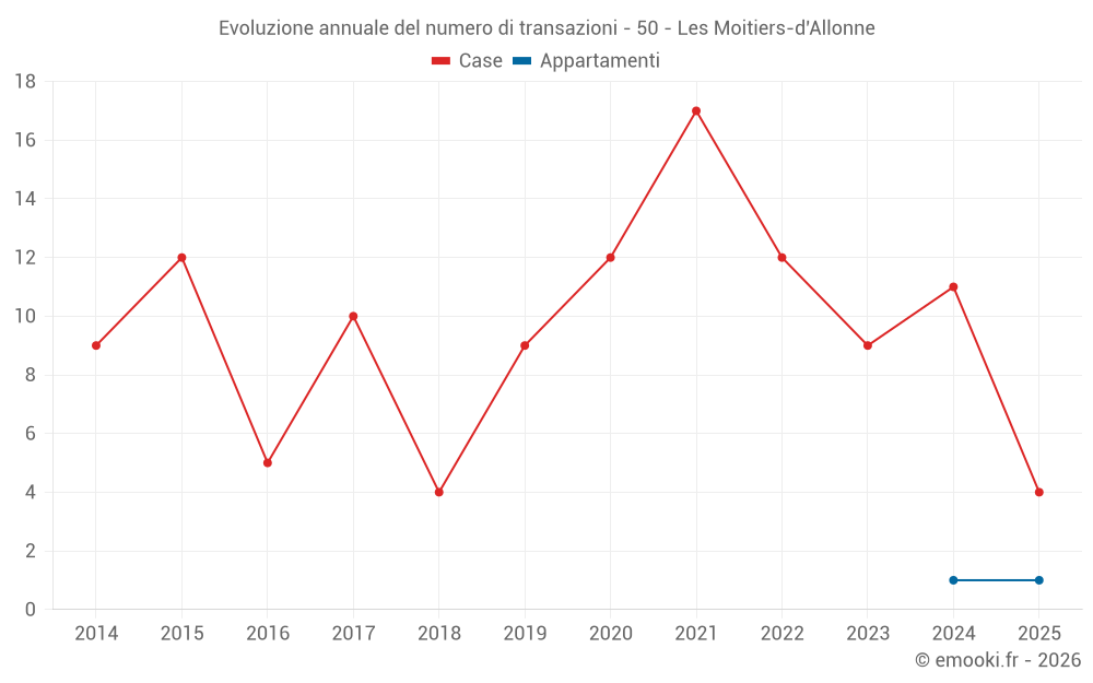 Il prezzo mediano sulle 20 transazioni di case degli ultimi 24 mesi nel comune di Les Moitiers-d'Allonne era di 2 382 € al metro quadrato per un valore patrimoniale mediano di 214 000 €. In questo periodo il 60% delle transazioni era tra 1 613 e 3 290 € al metro quadrato (dal 2° all'8° decile).