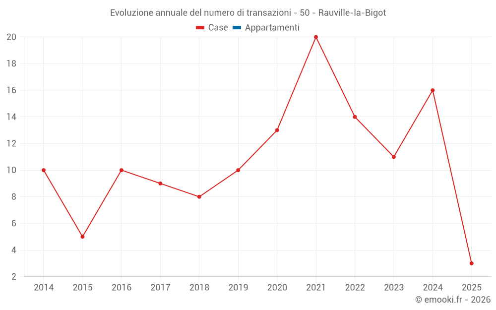 Il prezzo mediano sulle 25 transazioni di case degli ultimi 24 mesi nel comune di Rauville-la-Bigot era di 2 125 € al metro quadrato per un valore patrimoniale mediano di 190 000 €. In questo periodo il 60% delle transazioni era tra 1 563 e 2 507 € al metro quadrato (dal 2° all'8° decile).