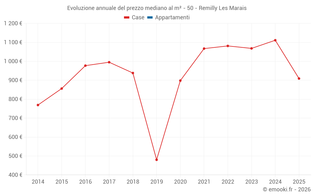 Il prezzo mediano sulle 16 transazioni di case degli ultimi 12 mesi nel comune di Remilly Les Marais era di 906 € al metro quadrato per un valore patrimoniale mediano di 80 000 €. In questo periodo il 60% delle transazioni era tra 646 e 1 714 € al metro quadrato (dal 2° all'8° decile).
