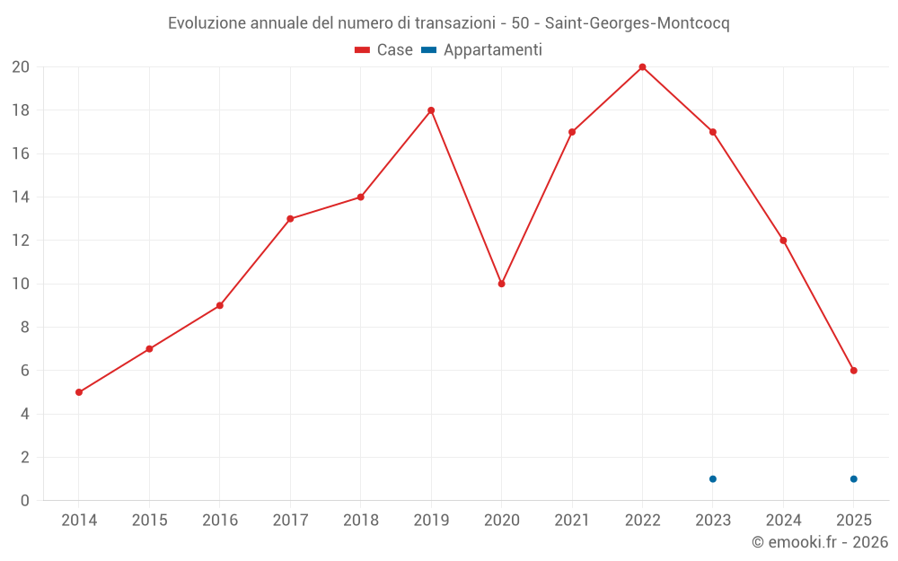 Il prezzo mediano sulle 22 transazioni di case degli ultimi 24 mesi nel comune di Saint-Georges-Montcocq era di 1 608 € al metro quadrato per un valore patrimoniale mediano di 175 014 €. In questo periodo il 60% delle transazioni era tra 1 290 e 1 872 € al metro quadrato (dal 2° all'8° decile).