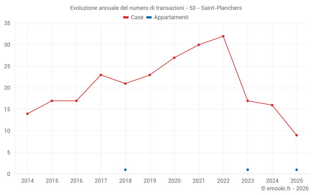 Il prezzo mediano sulle 19 transazioni di case degli ultimi 12 mesi nel comune di Saint-Planchers era di 2 880 € al metro quadrato per un valore patrimoniale mediano di 260 000 €. In questo periodo il 60% delle transazioni era tra 1 368 e 3 271 € al metro quadrato (dal 2° all'8° decile).