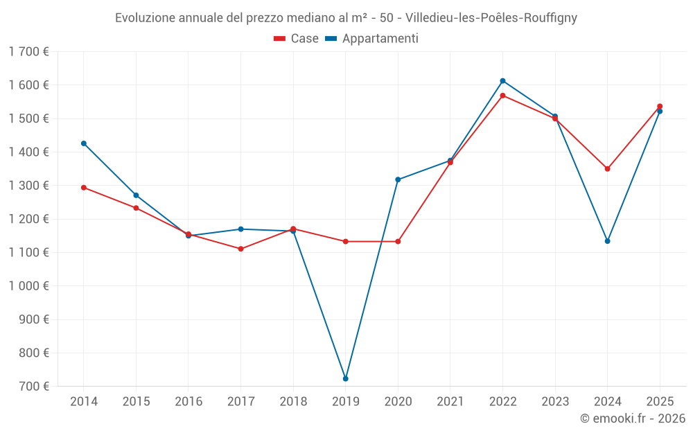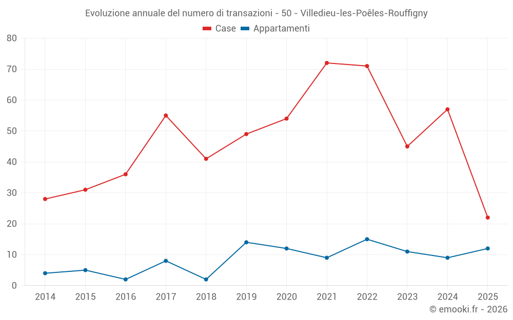 Il prezzo mediano sulle 17 transazioni di appartamenti degli ultimi 12 mesi nel comune di Villedieu-les-Poêles-Rouffigny era di 1 500 € al metro quadrato per un valore patrimoniale mediano di 108 000 €. In questo periodo il 60% delle transazioni era tra 791 e 1 670 € al metro quadrato (dal 2° all'8° decile).