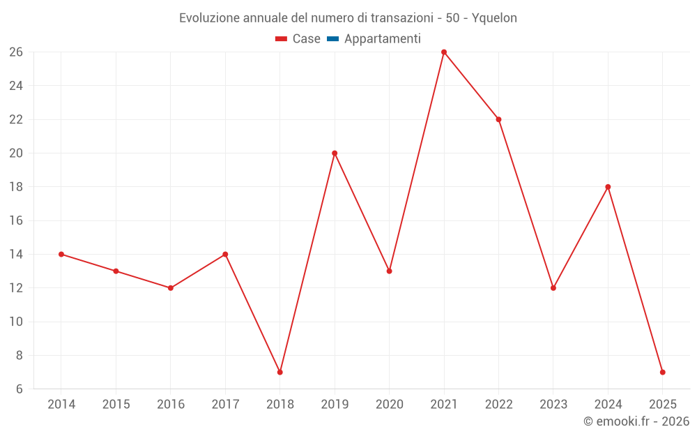Il prezzo mediano sulle 16 transazioni di case degli ultimi 12 mesi nel comune di Yquelon era di 2 716 € al metro quadrato per un valore patrimoniale mediano di 262 550 €. In questo periodo il 60% delle transazioni era tra 1 899 e 2 958 € al metro quadrato (dal 2° all'8° decile).