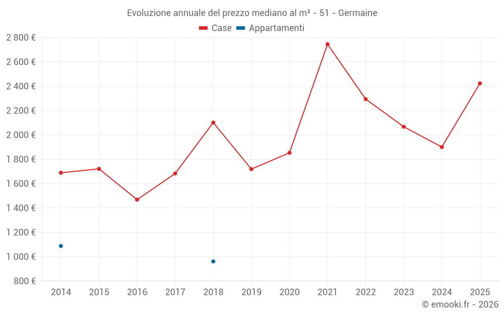 Evoluzione del prezzo mediano al m² degli appartamenti