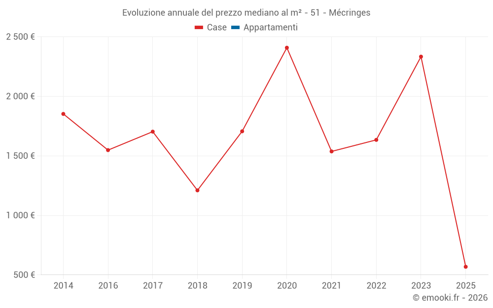 Evoluzione del prezzo mediano al m² degli appartamenti