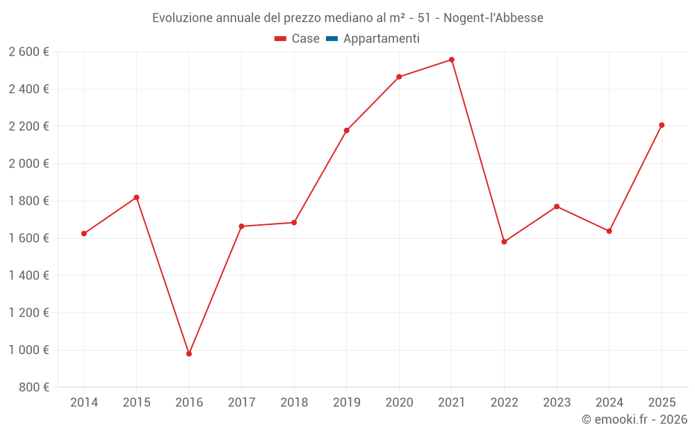 Evoluzione del prezzo mediano al m² degli appartamenti