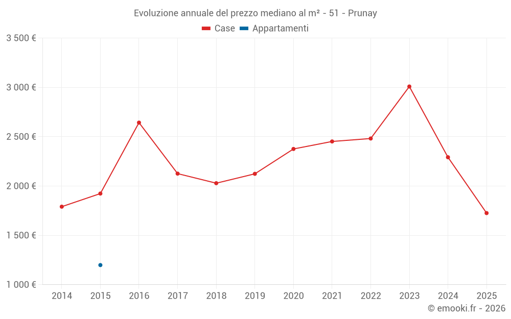 Evoluzione del prezzo mediano al m² degli appartamenti