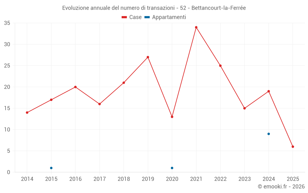 Il prezzo mediano sulle 17 transazioni di case degli ultimi 12 mesi nel comune di Bettancourt-la-Ferrée era di 1 500 € al metro quadrato per un valore patrimoniale mediano di 130 000 €. In questo periodo il 60% delle transazioni era tra 1 361 e 1 696 € al metro quadrato (dal 2° all'8° decile).