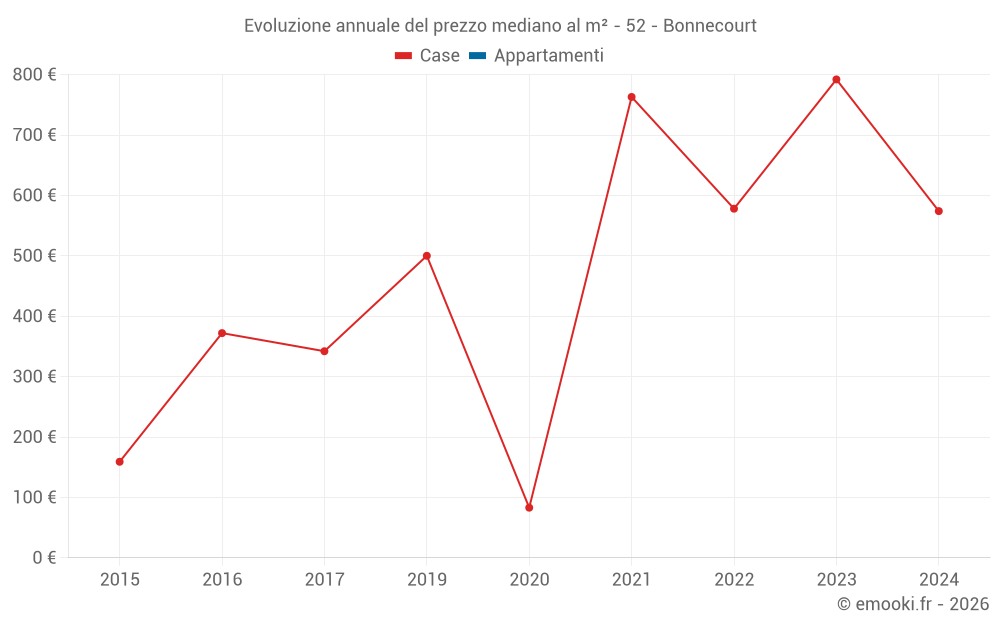Evoluzione del prezzo mediano al m² degli appartamenti