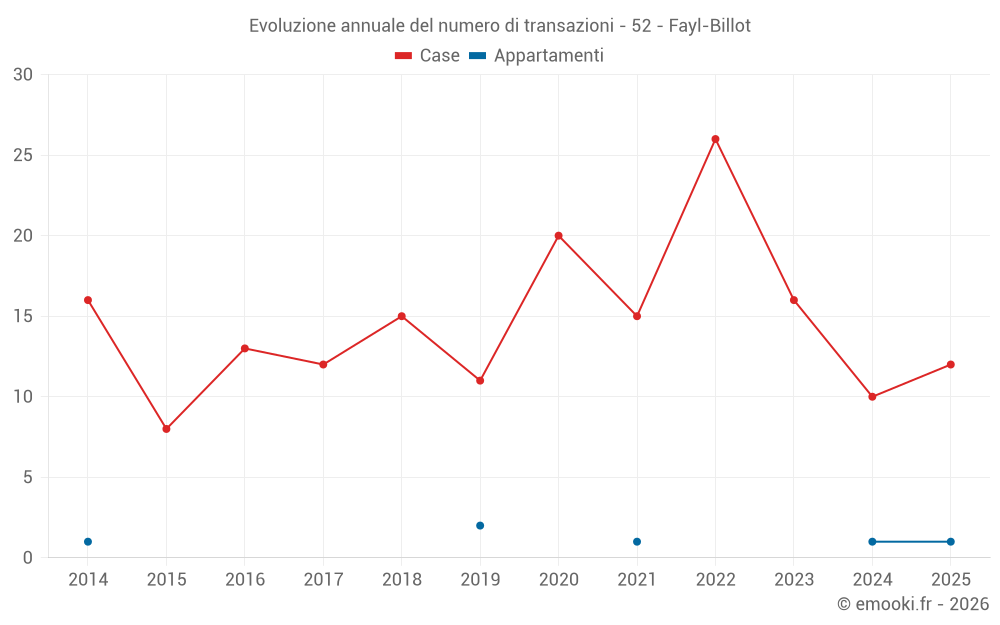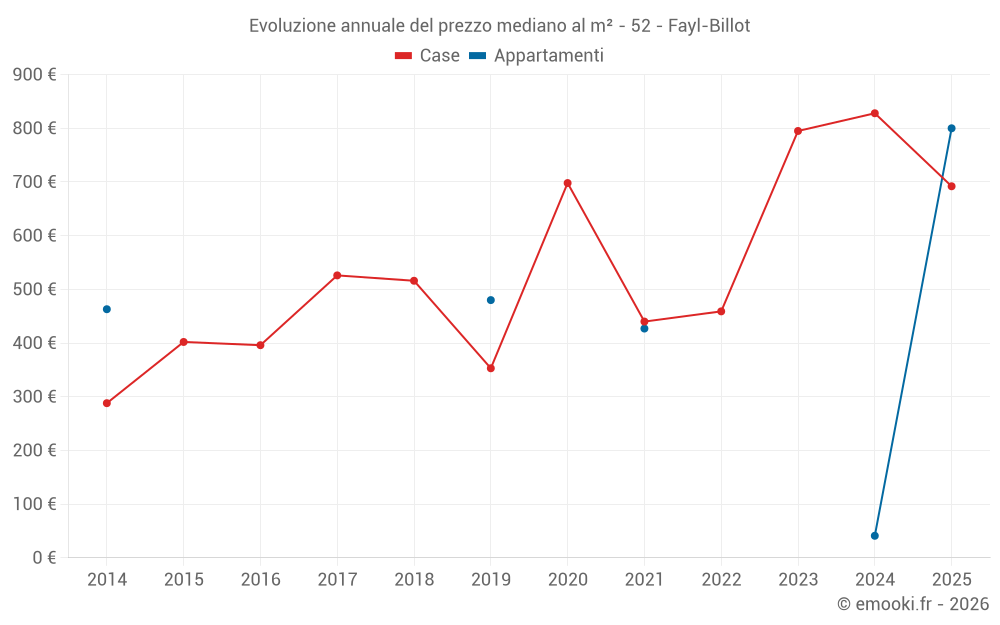 Il prezzo mediano sulle 19 transazioni di case degli ultimi 12 mesi nel comune di Fayl-Billot era di 777 € al metro quadrato per un valore patrimoniale mediano di 65 000 €. In questo periodo il 60% delle transazioni era tra 373 e 1 028 € al metro quadrato (dal 2° all'8° decile).