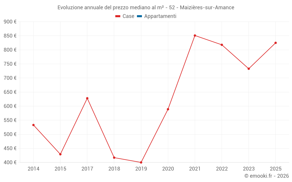 Evoluzione del prezzo mediano al m² degli appartamenti