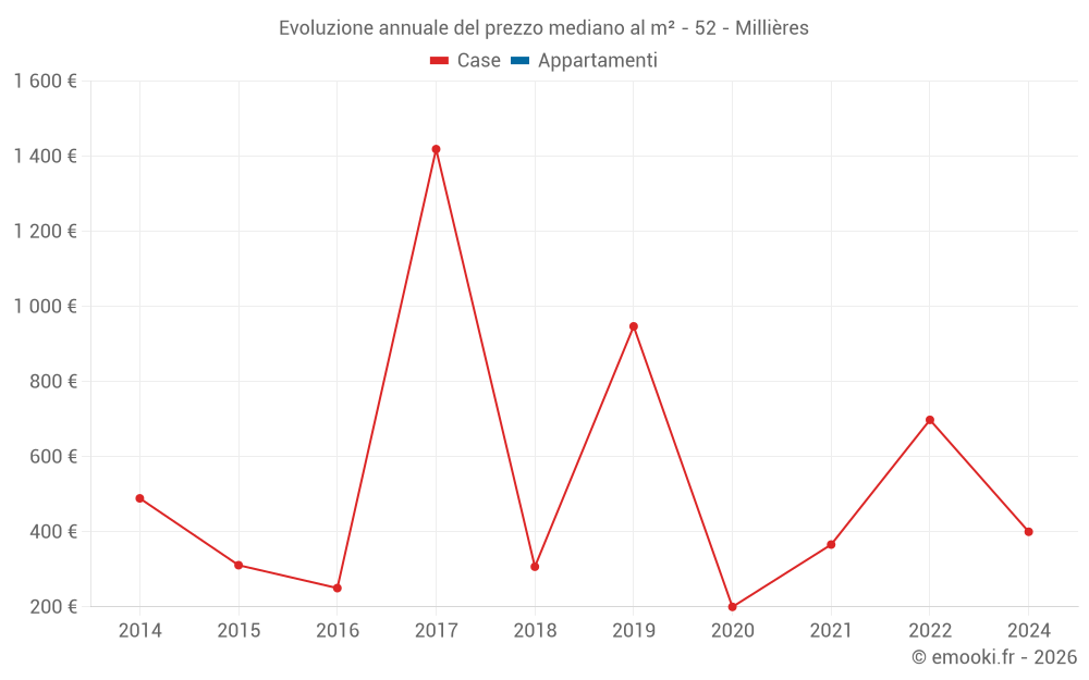 Evoluzione del prezzo mediano al m² degli appartamenti