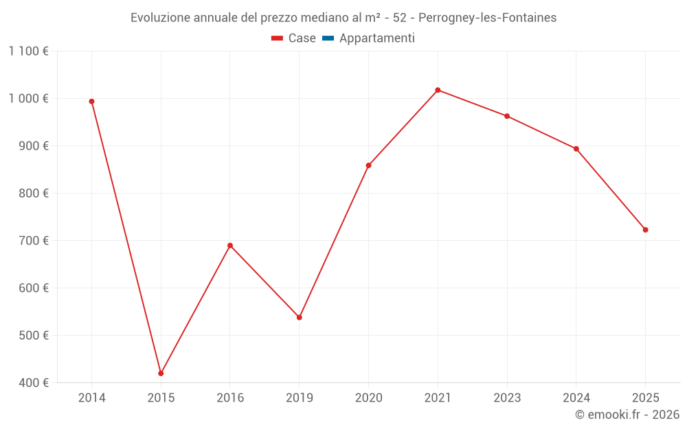 Evoluzione del prezzo mediano al m² degli appartamenti