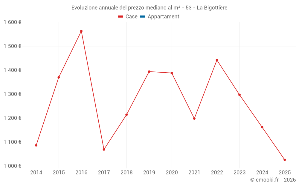 Evoluzione del prezzo mediano al m² degli appartamenti