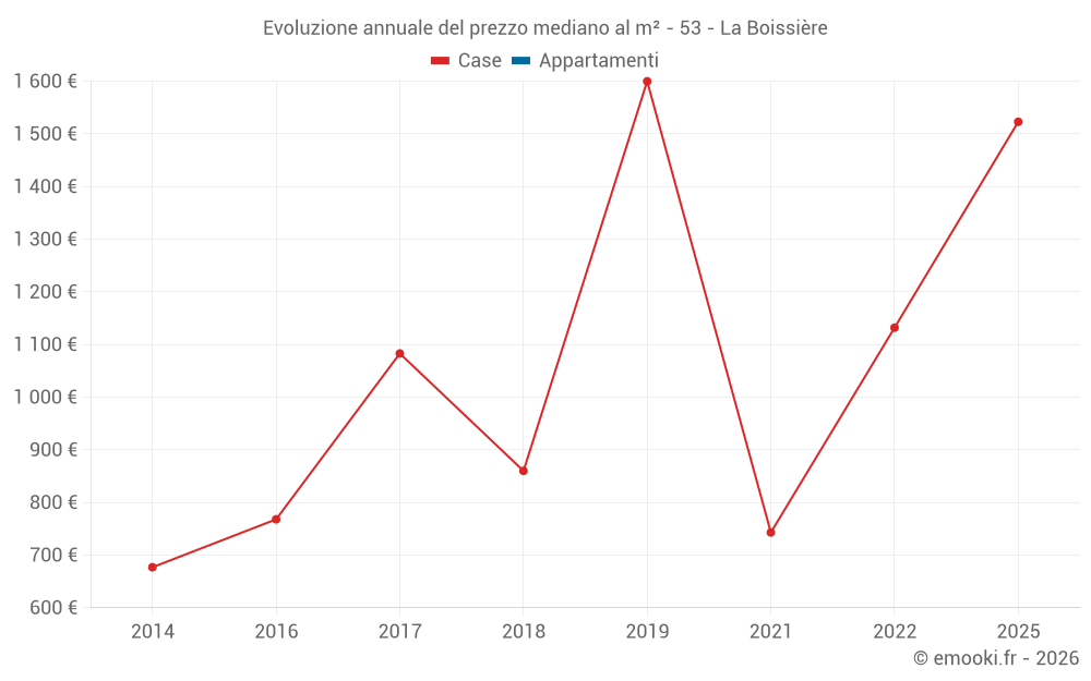Evoluzione del prezzo mediano al m² degli appartamenti