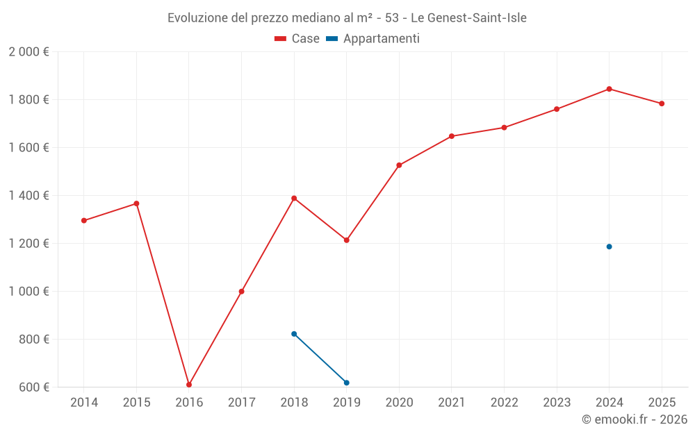 Mappa dei prezzi della casa nel comune di Le Genest-Saint-Isle, scegli una sezione per vedere le transazioni per parcella.