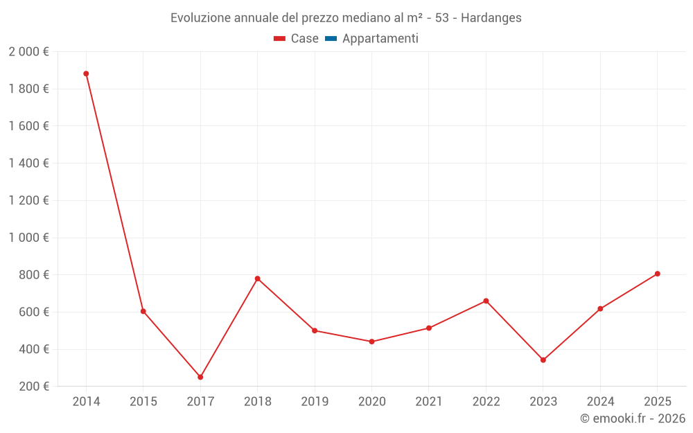 Evoluzione del prezzo mediano al m² degli appartamenti