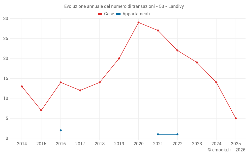 Il prezzo mediano sulle 16 transazioni di case degli ultimi 12 mesi nel comune di Landivy era di 898 € al metro quadrato per un valore patrimoniale mediano di 67 500 €. In questo periodo il 60% delle transazioni era tra 385 e 1 250 € al metro quadrato (dal 2° all'8° decile).