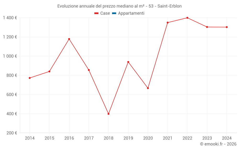 Evoluzione del prezzo mediano al m² degli appartamenti