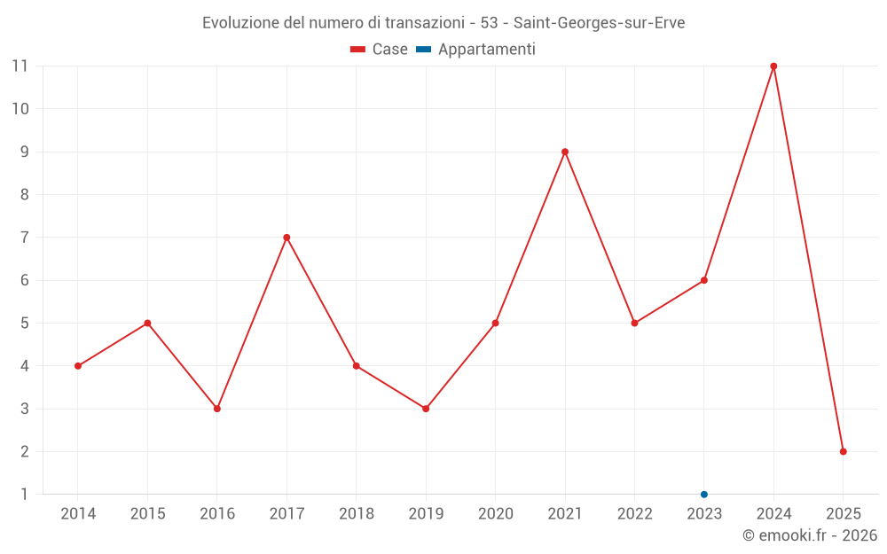 Mappa dei prezzi della casa nel comune di Saint-Georges-sur-Erve, scegli una sezione per vedere le transazioni per parcella.