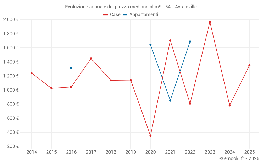 Evoluzione del prezzo mediano al m² degli appartamenti
