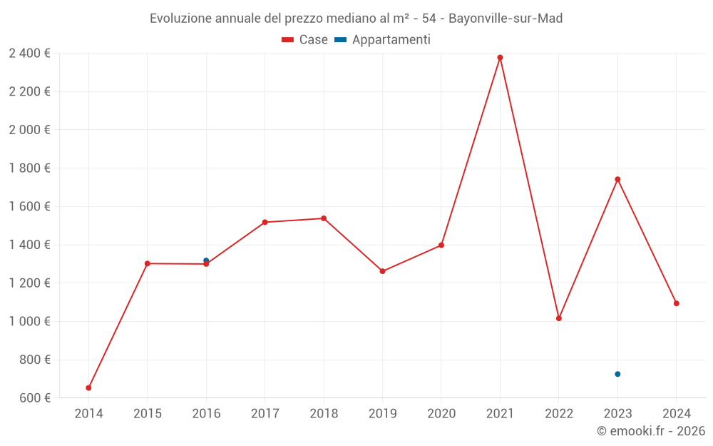 Evoluzione del prezzo mediano al m² degli appartamenti