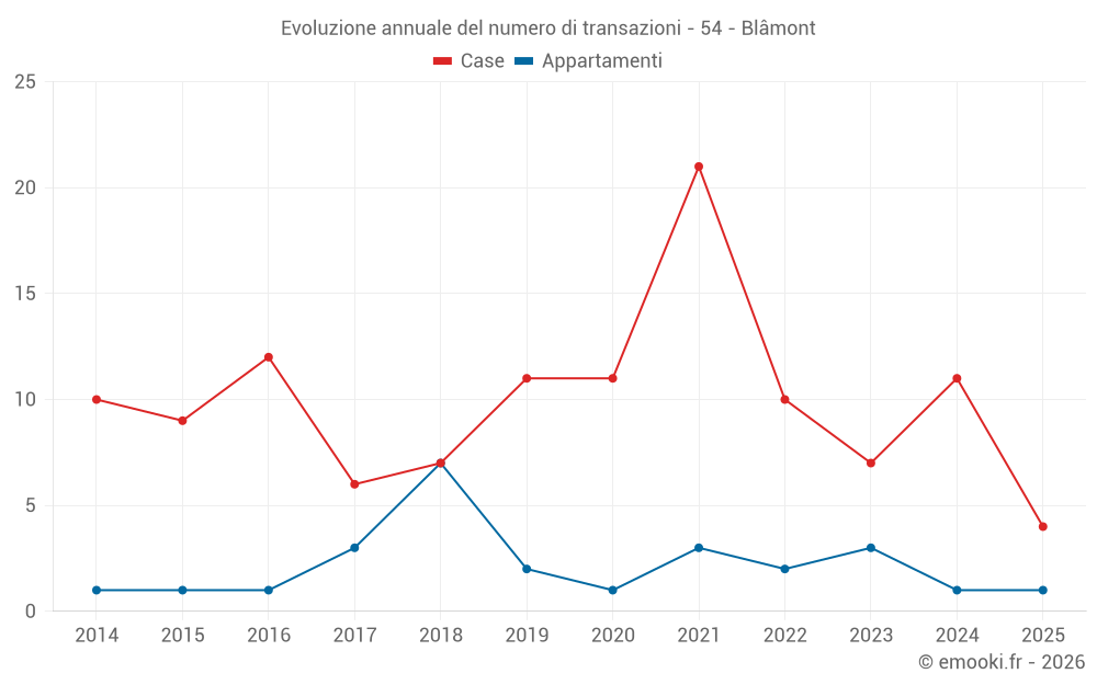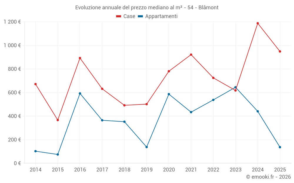 Il prezzo mediano sulle 21 transazioni di case degli ultimi 24 mesi nel comune di Blâmont era di 618 € al metro quadrato per un valore patrimoniale mediano di 70 000 €. In questo periodo il 60% delle transazioni era tra 296 e 1 389 € al metro quadrato (dal 2° all'8° decile).